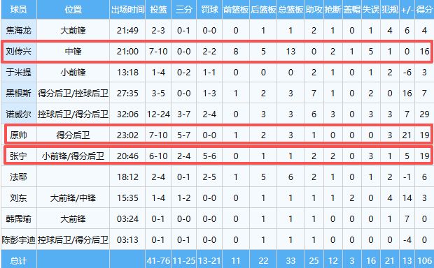 第四人便是中鋒劉傳興,本場比賽首發(fā)出戰(zhàn)21分鐘10中7爆砍16分13籃板2搶斷1蓋帽,劉傳興一人打爆廣東隊內(nèi)線,搶了8個前場籃板!之前他代表廣東出戰(zhàn)全運會表現(xiàn)也十分亮眼,他的實力碾壓李祥波,所以下一次國家隊集訓(xùn)打日本隊比賽,我覺得李祥波不該再帶了,帶劉傳興等人也比他強一萬倍。