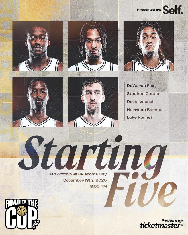 北京時間12月14日,NBA杯半決賽馬刺對陣雷霆的比賽即將打響,賽前,馬刺公布了本場比賽的首發(fā)陣容。